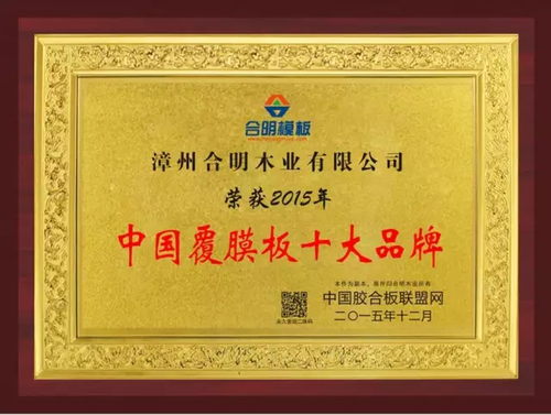 獲得中國覆膜板十大品牌