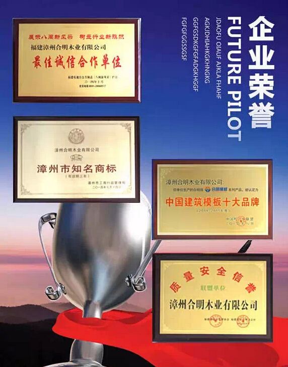 合明模板越做越大,在得到關注的同時也得到了各界的肯定。客戶信任合明模板,不遠千里到合明洽商。中國企業網、百年建筑網、中國木業信息網、網易、搜狐等各大媒體對合明木業進行了報道,贊賞合明進取的企業精神。不僅如此,合明還獲得了“誠信經營倡導單位”、“質量安全信譽聯盟單位”等近十項榮譽。